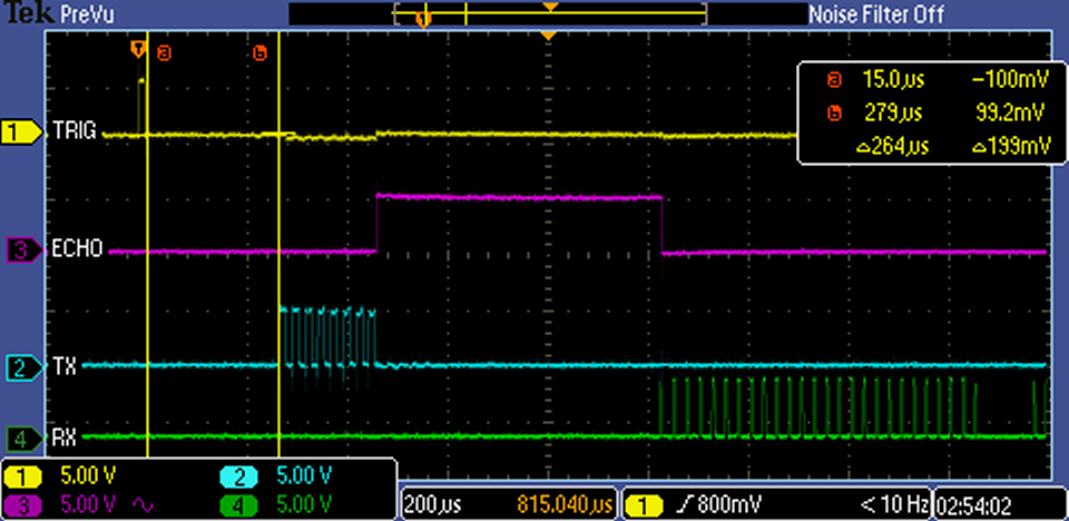 Note The Echo pulse does not start till 202 µs after the start of sending. The start of sending is our